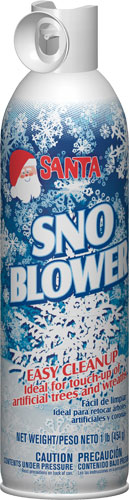 Santa® Sno Blower® delivers a natural look, highlighting the tips of evergreen branches, accenting wreaths and centerpieces. It is not designed to fully flock trees. Our unique spray nozzle provides greater directional control, focuses the spray, and minimizes cleanup. To clean up, brush off loose particles, then wipe surface with a damp paper towel or spray with window cleaner and wipe with a squeegee.