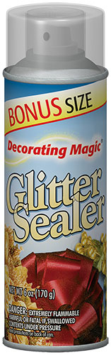 Decorating Magic® Glitter Sealer is a spray-on clear coat that adds durability to your glitter projects. It preserves the color and sparkle of glitter and presents flaking. Multiple layers of sealer can be built up to give a smooth, glossy finish.